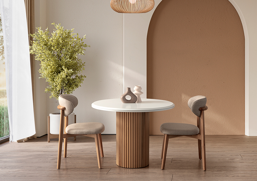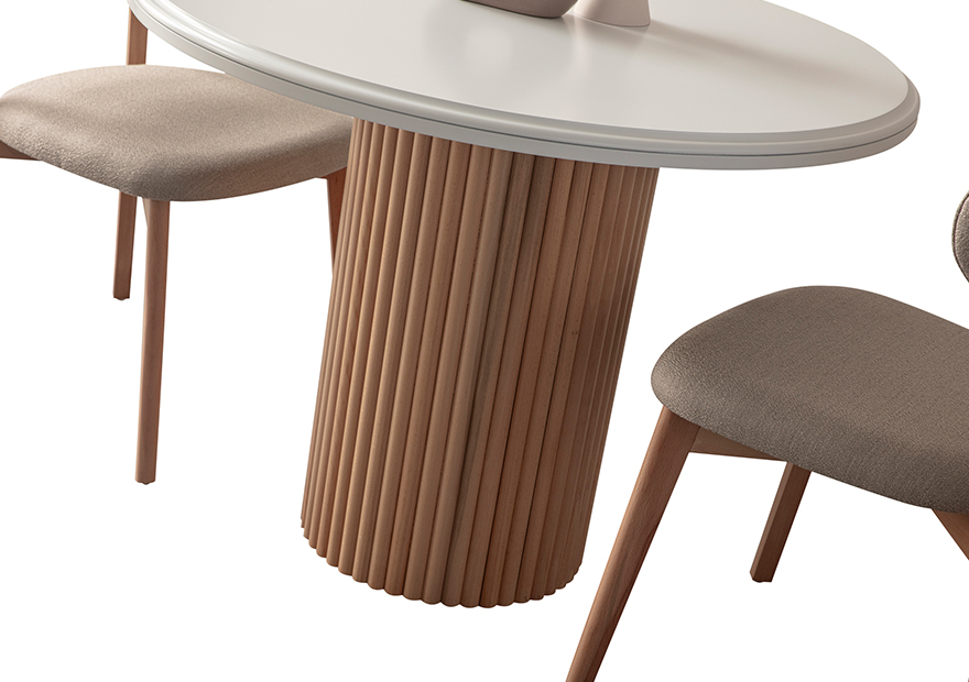 Icon Çıtalı Masa, modern çizgileri ve siyah-beyaz renkleriyle şık ve zarif bir oturma grubu sunar. Hem konforlu hem de estetik olan bu tasarım, çağdaş yaşam alanlarına mükemmel uyum sağlar.