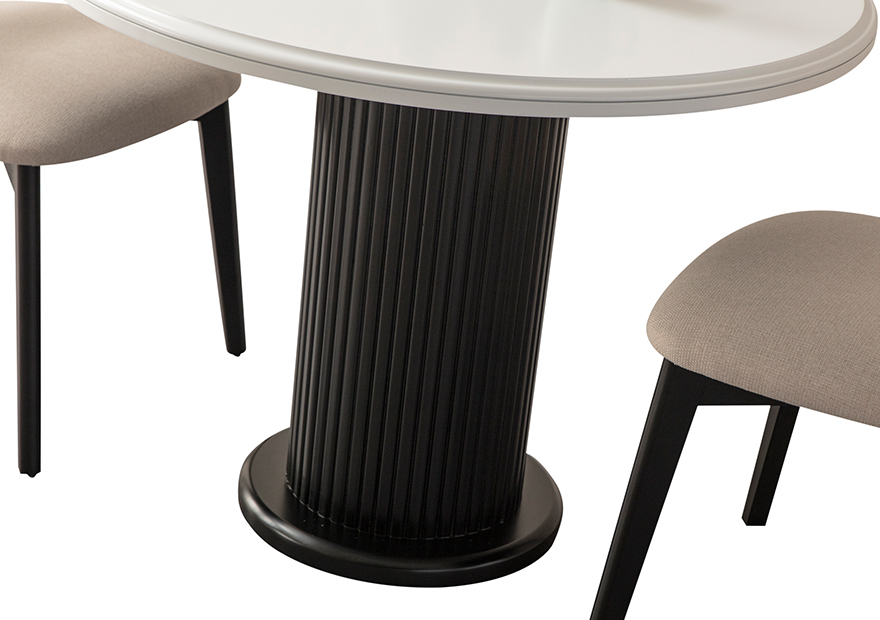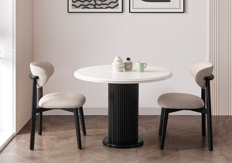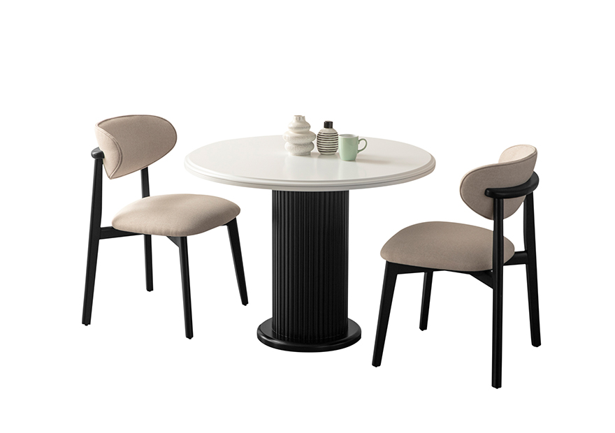 Icon Yuvarlak Masa, modern çizgileri ve siyah-beyaz renkleriyle şık ve zarif bir oturma grubu sunar. Hem konforlu hem de estetik olan bu tasarım, çağdaş yaşam alanlarına mükemmel uyum sağlar.