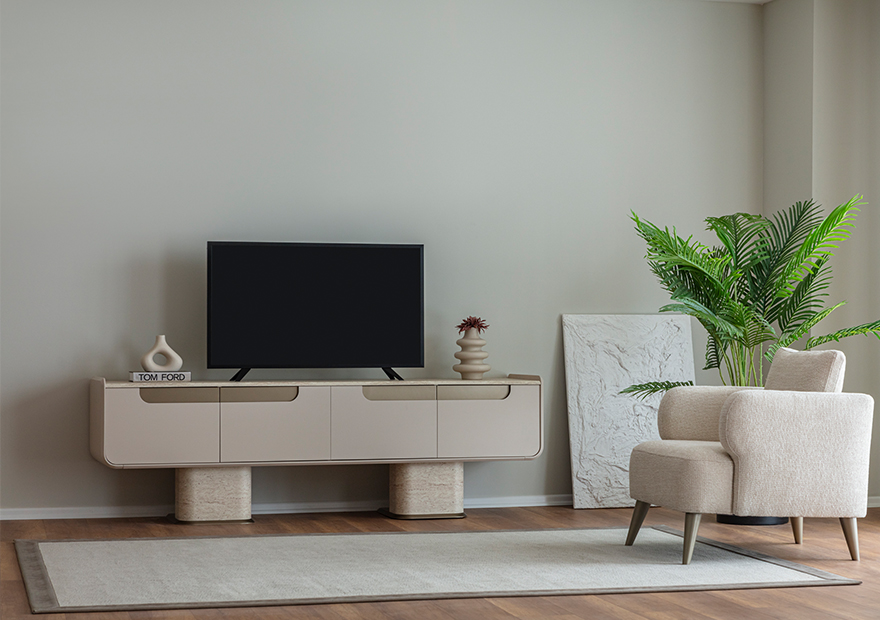 Pera TV Ünitesi, modern çizgileri ve siyah-beyaz renkleriyle şık ve zarif bir oturma grubu sunar. Hem konforlu hem de estetik olan bu tasarım, çağdaş yaşam alanlarına mükemmel uyum sağlar.