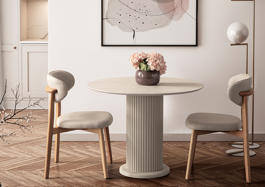 Soft Yuvarlak Masa, modern çizgileri ve siyah-beyaz renkleriyle şık ve zarif bir oturma grubu sunar. Hem konforlu hem de estetik olan bu tasarım, çağdaş yaşam alanlarına mükemmel uyum sağlar.